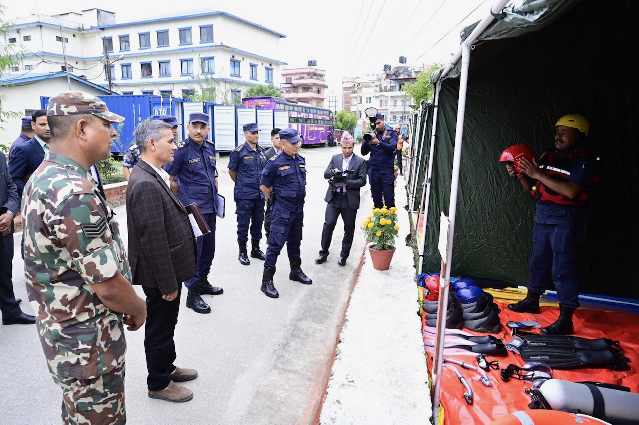गृहमन्त्री ओमप्रकाश अर्यालद्वारा नेपाल प्रहरी विपद् व्यवस्थापन कार्यालयको निरीक्षण तथा निर्देशन